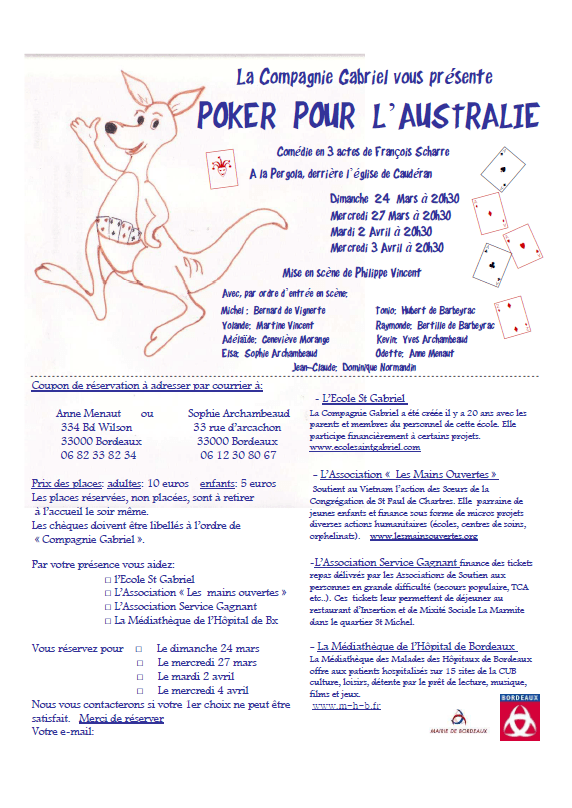 Affiche Poker pour l’Australie à Bordeaux 2013 28 juin 2016 par François Scharre | 0 Commentaire ← Image Précédente Image Suivante →